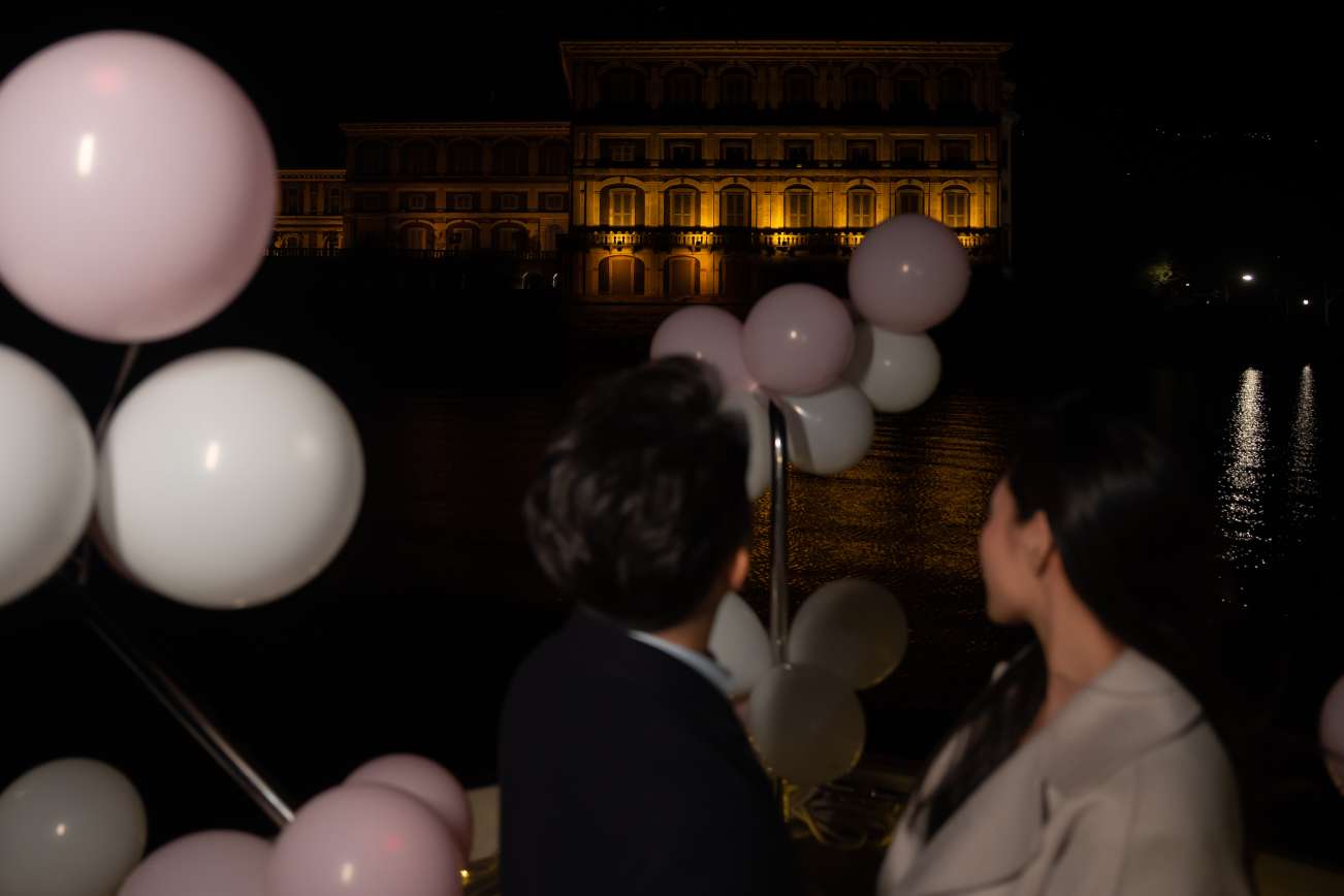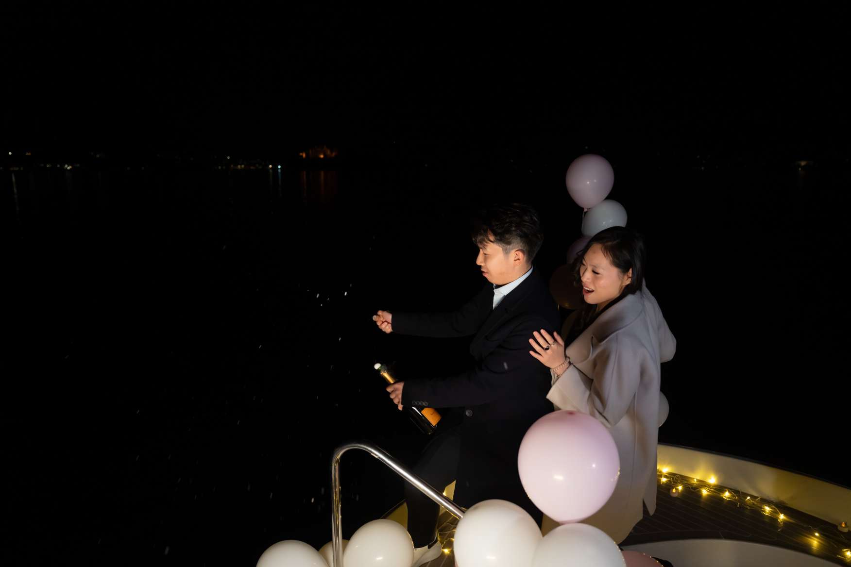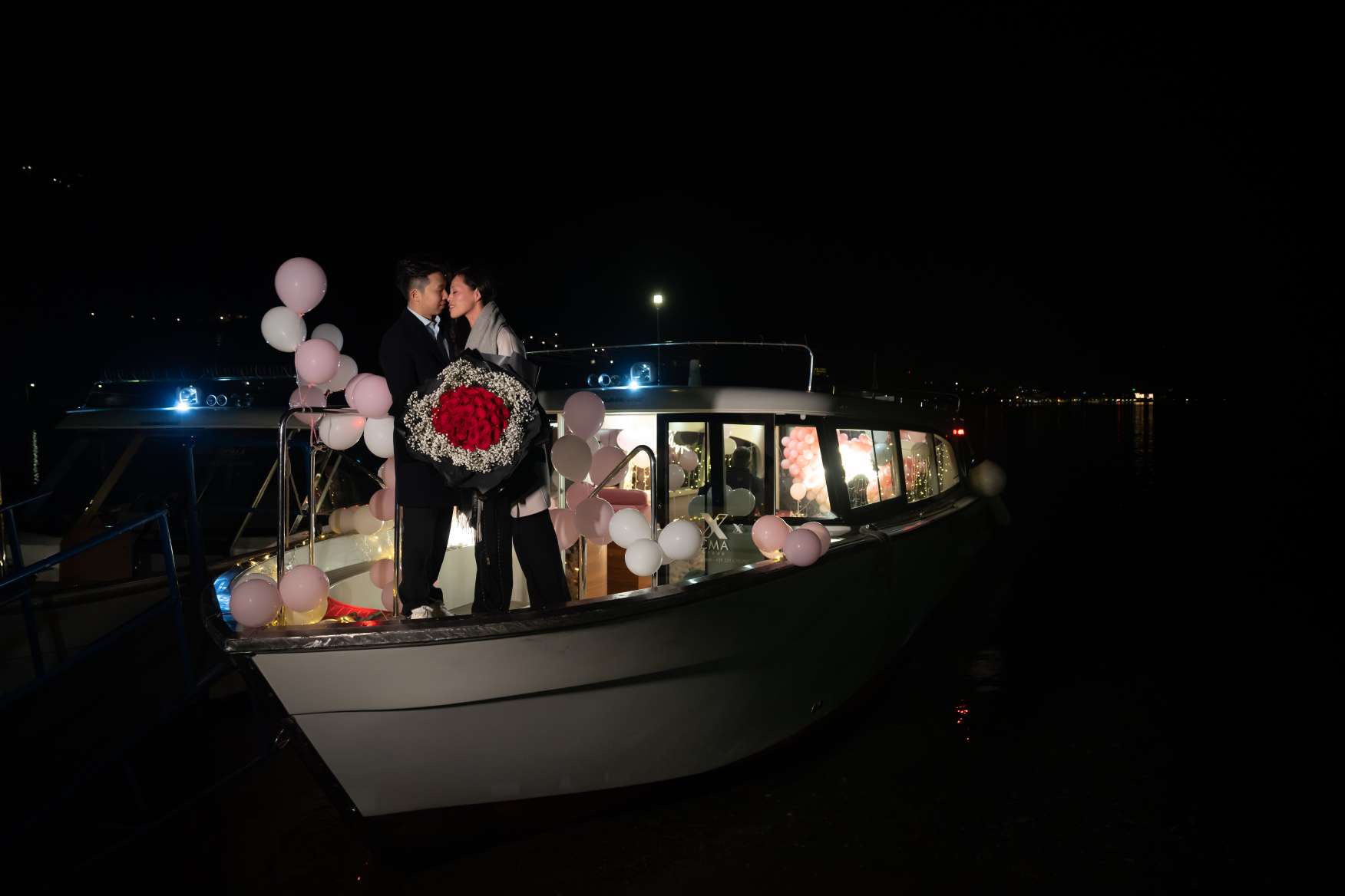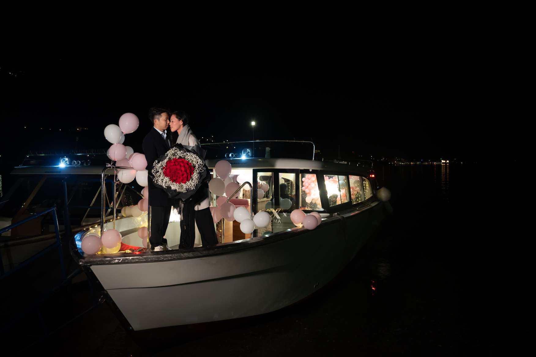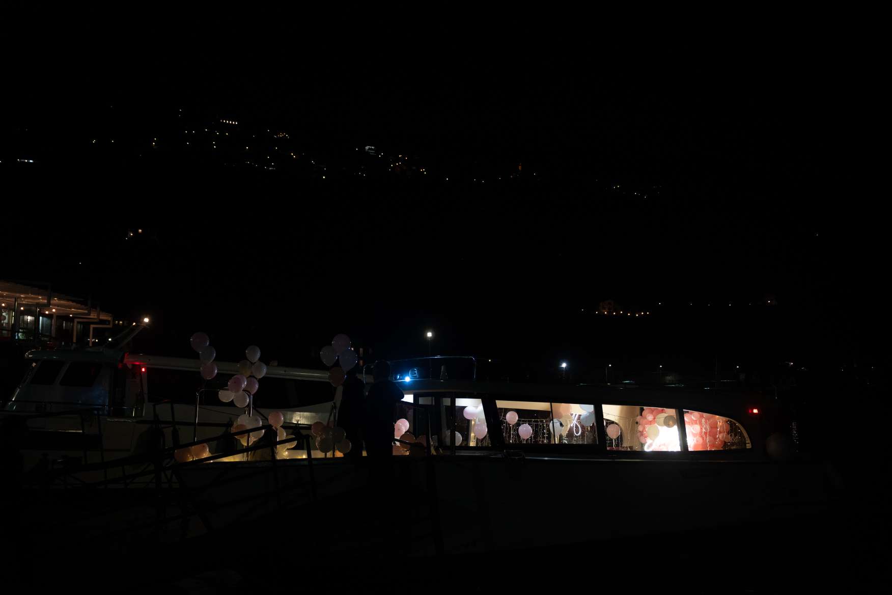 Dopo la cena, con la scusa di una piccola sorpresa di compleanno, Simona è stata accompagnata, con gli occhi bendati, su una barca.