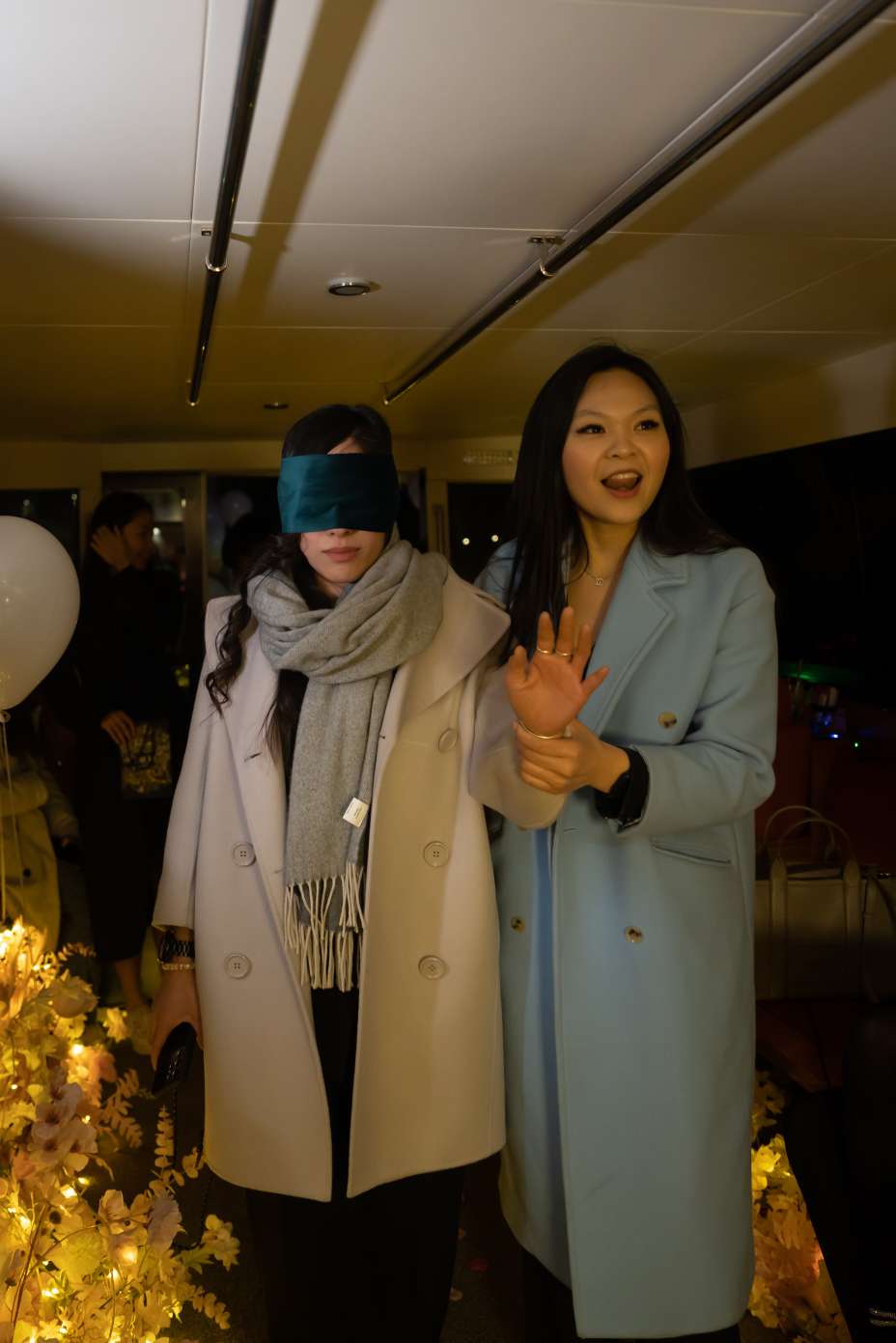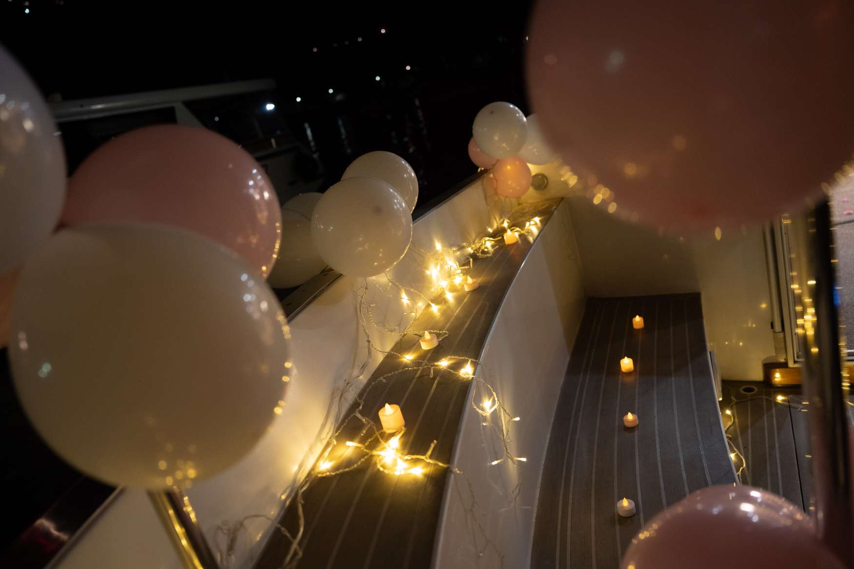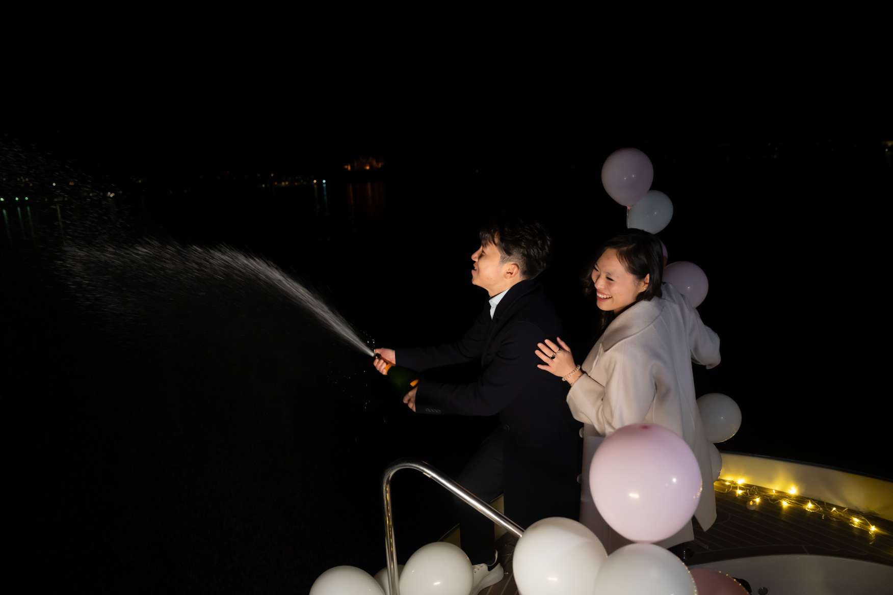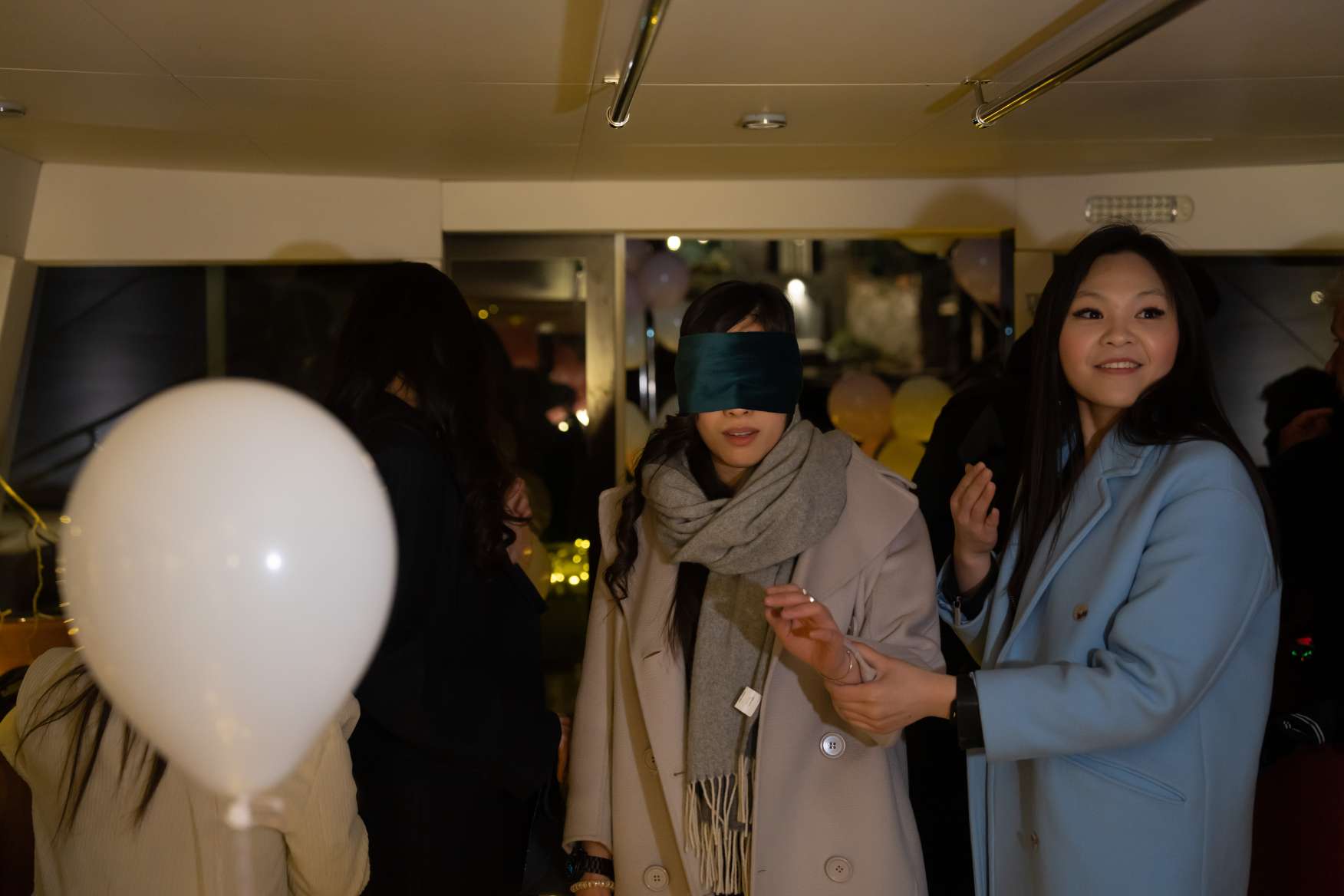Dopo la cena, con la scusa di una piccola sorpresa di compleanno, Simona è stata accompagnata, con gli occhi bendati, su una barca.