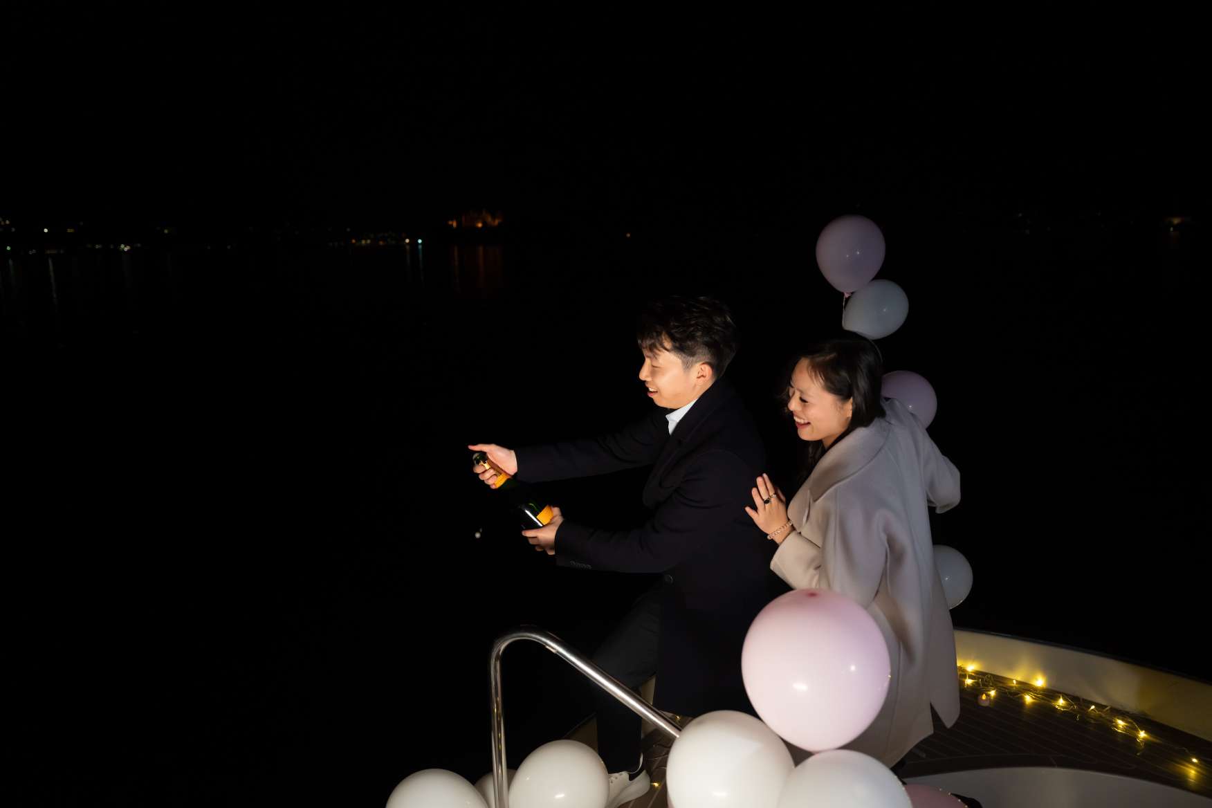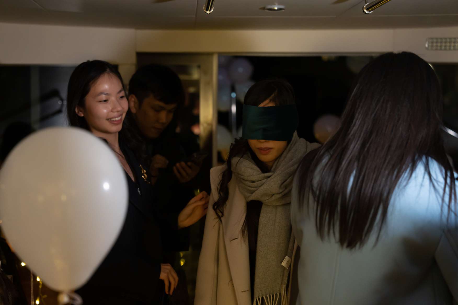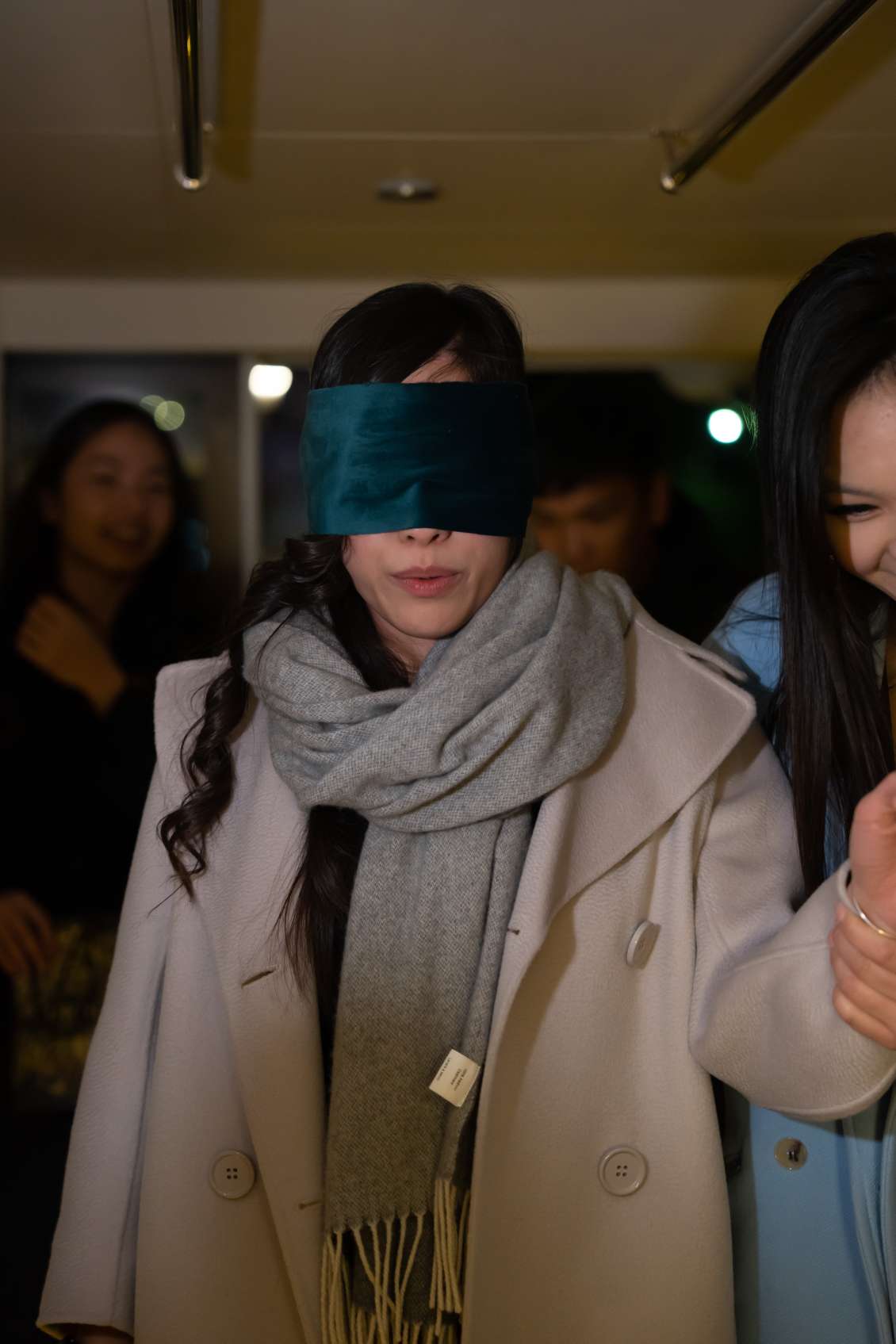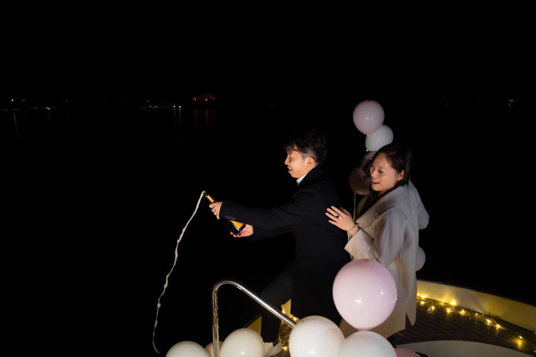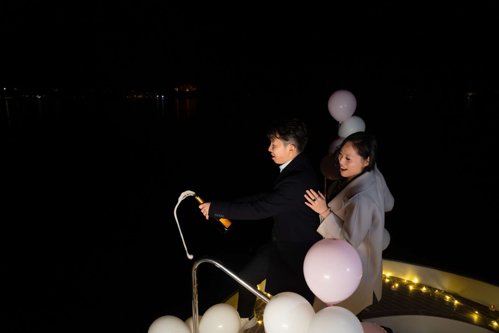 Dopo la cena, con la scusa di una piccola sorpresa di compleanno, Simona è stata accompagnata, con gli occhi bendati, su una barca.