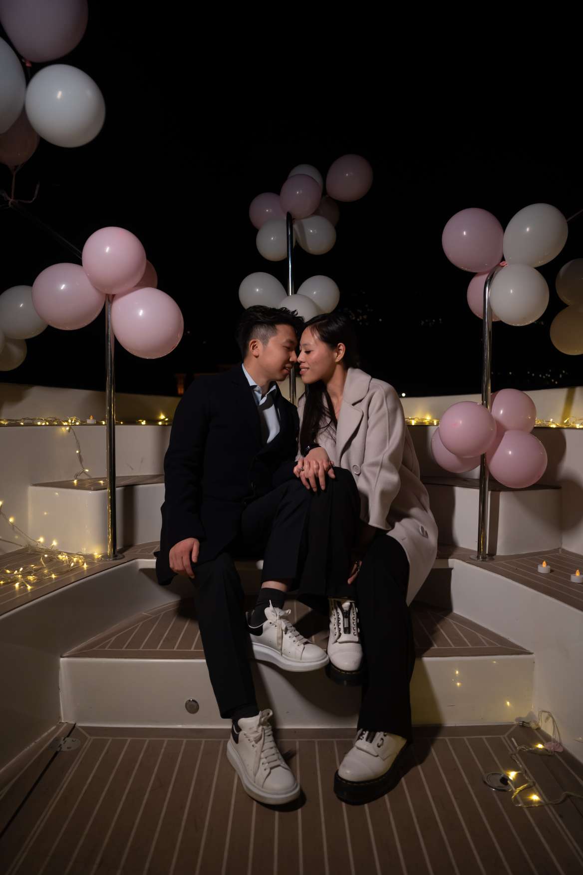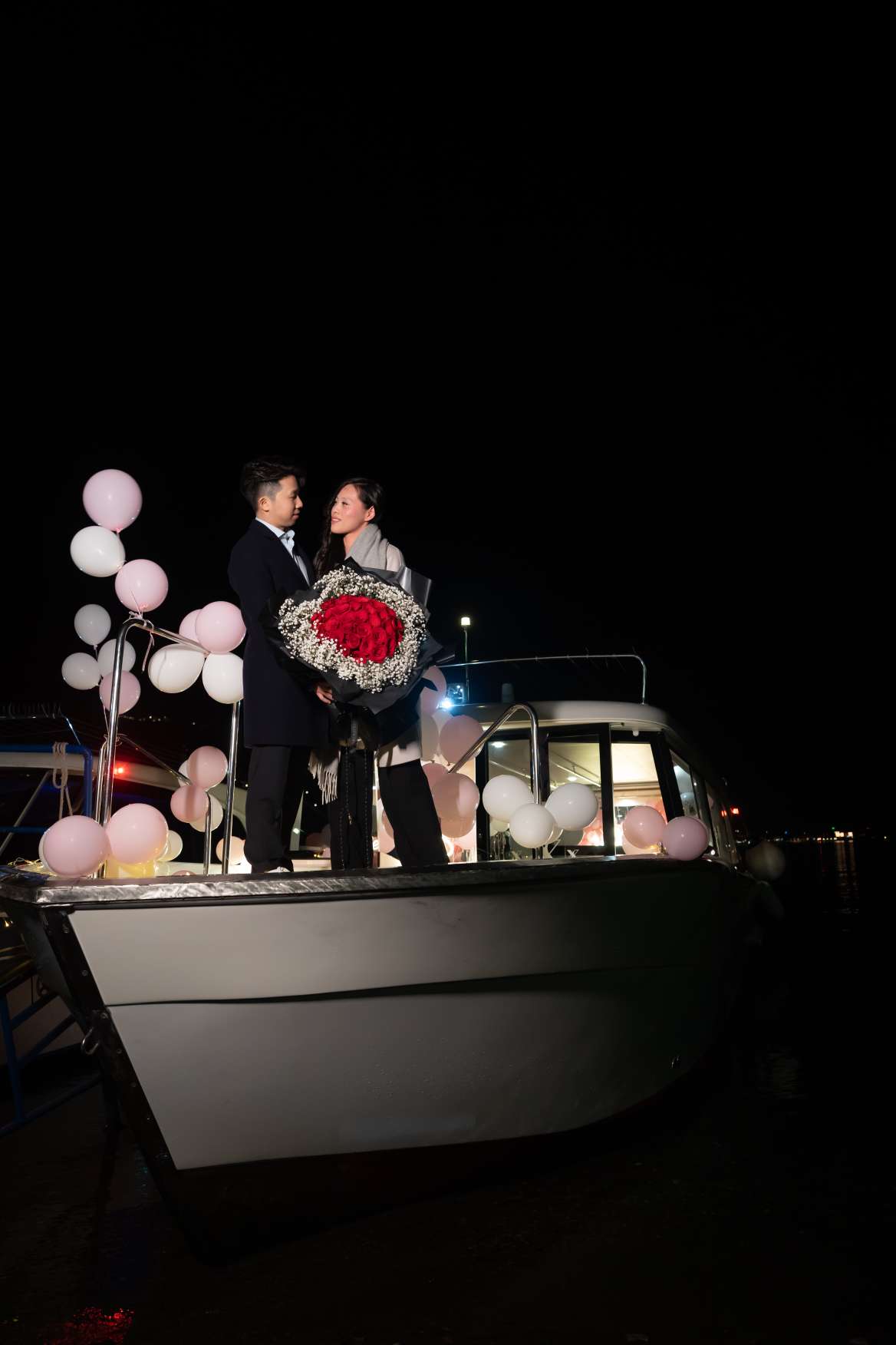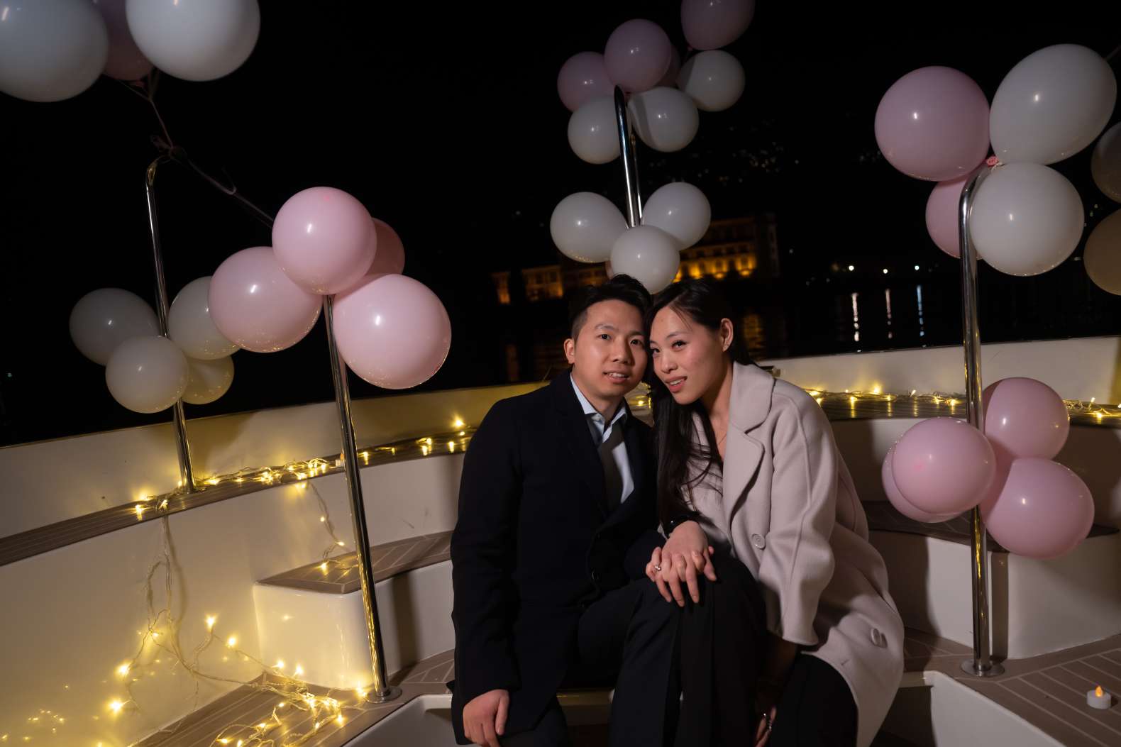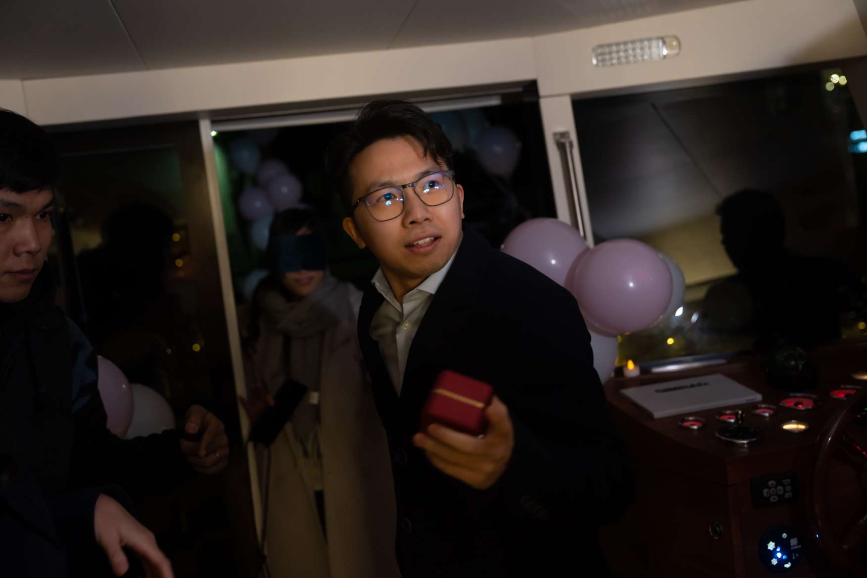 Dopo la cena, con la scusa di una piccola sorpresa di compleanno, Simona è stata accompagnata, con gli occhi bendati, su una barca.