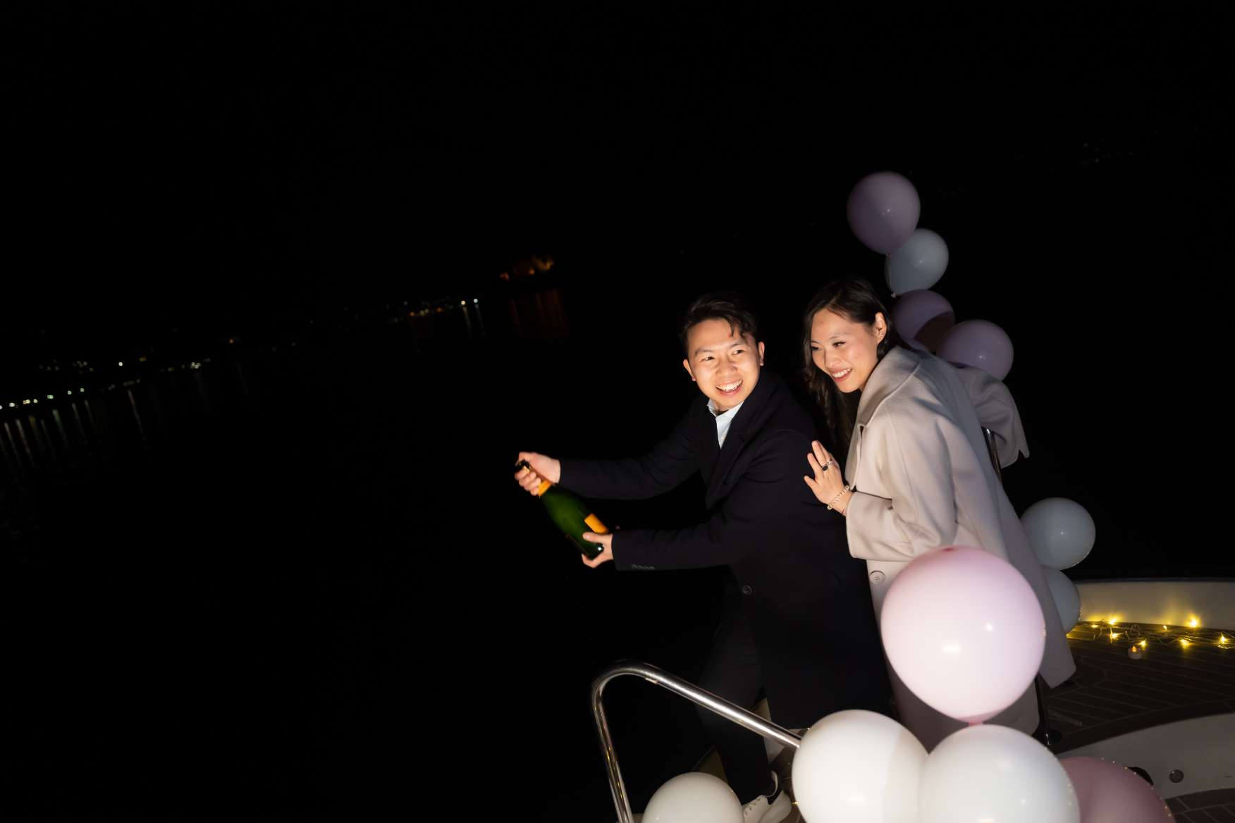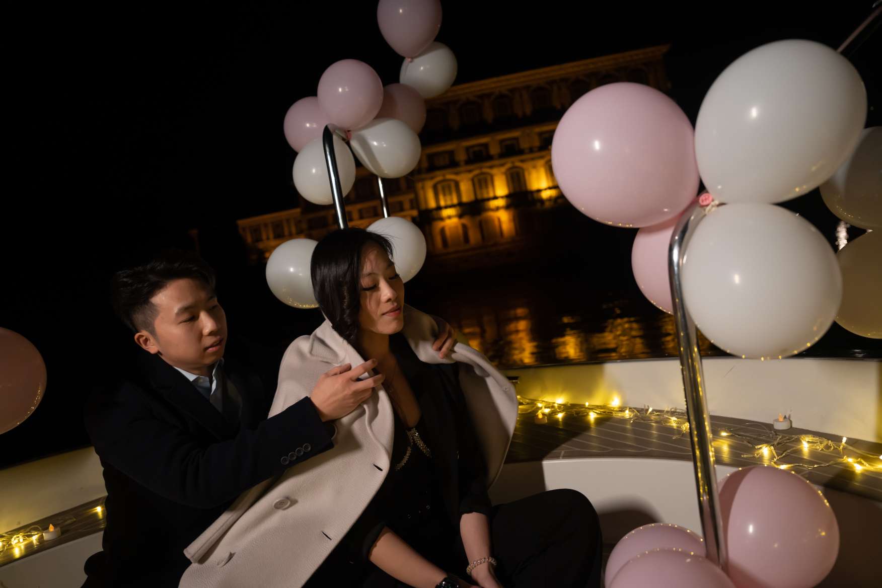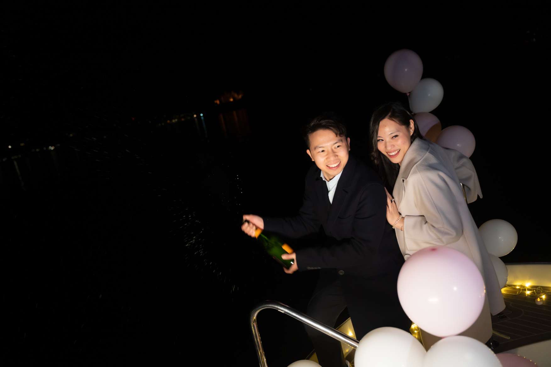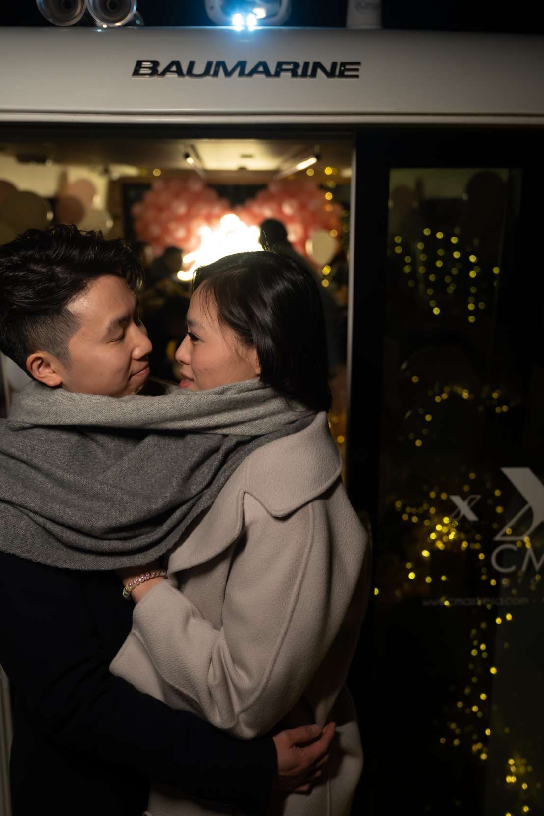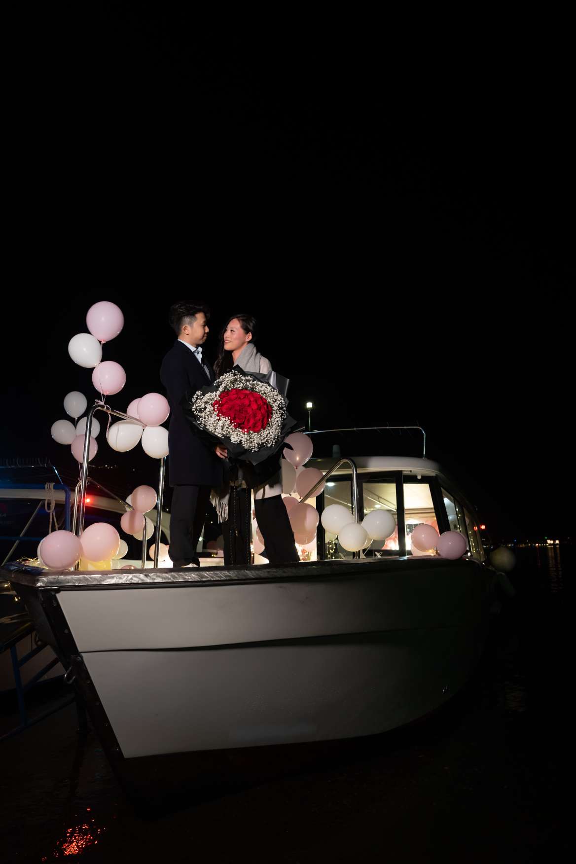 Dopo la cena, con la scusa di una piccola sorpresa di compleanno, Simona è stata accompagnata, con gli occhi bendati, su una barca.