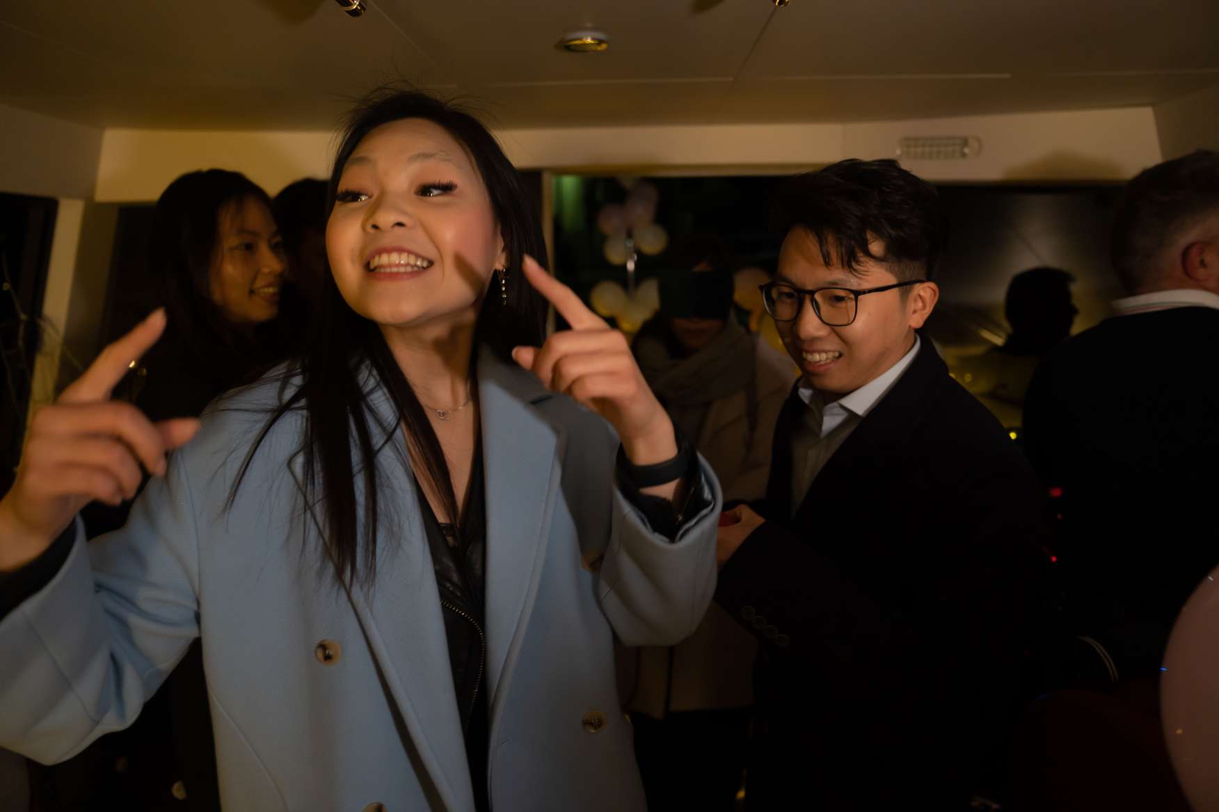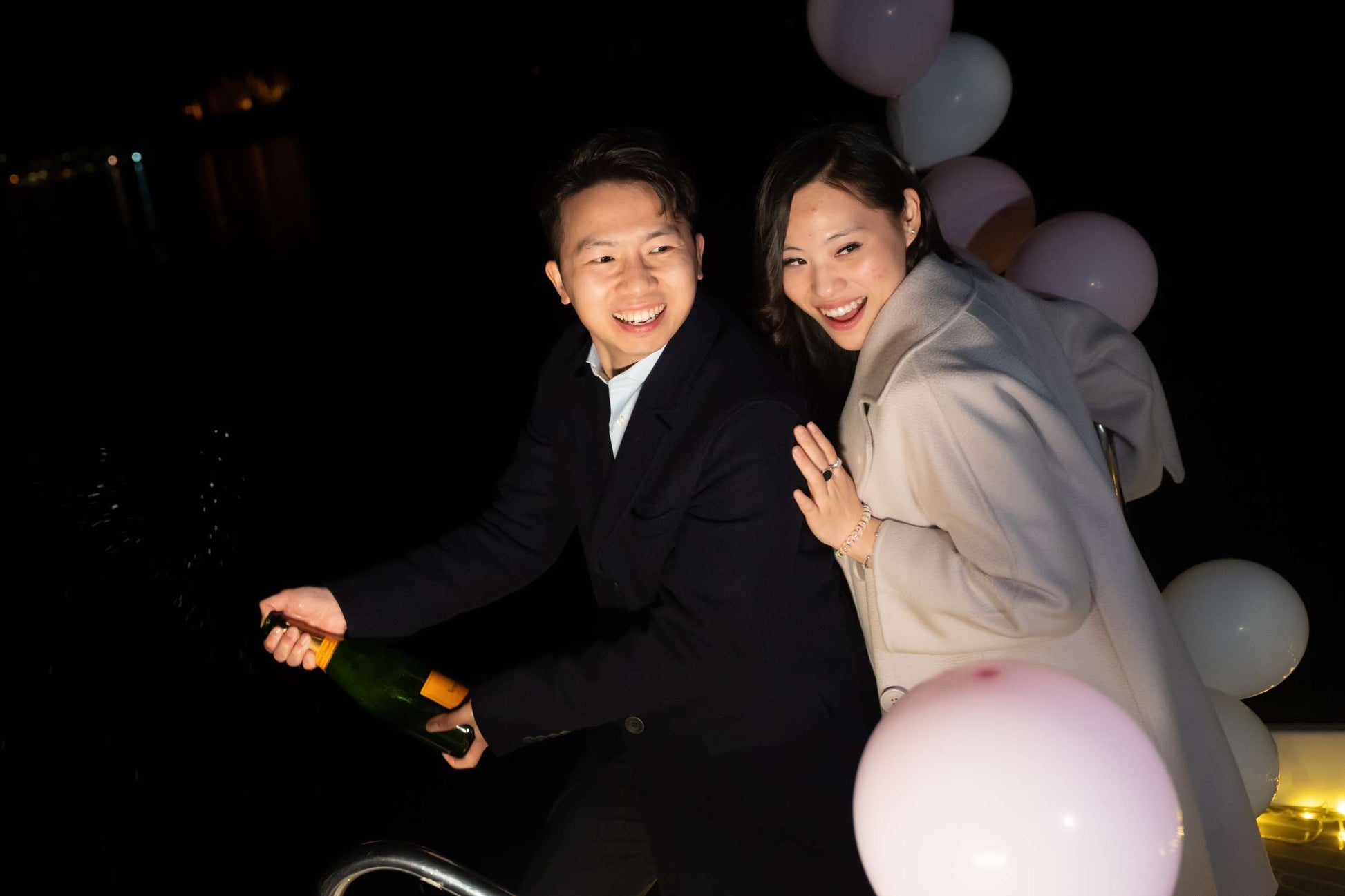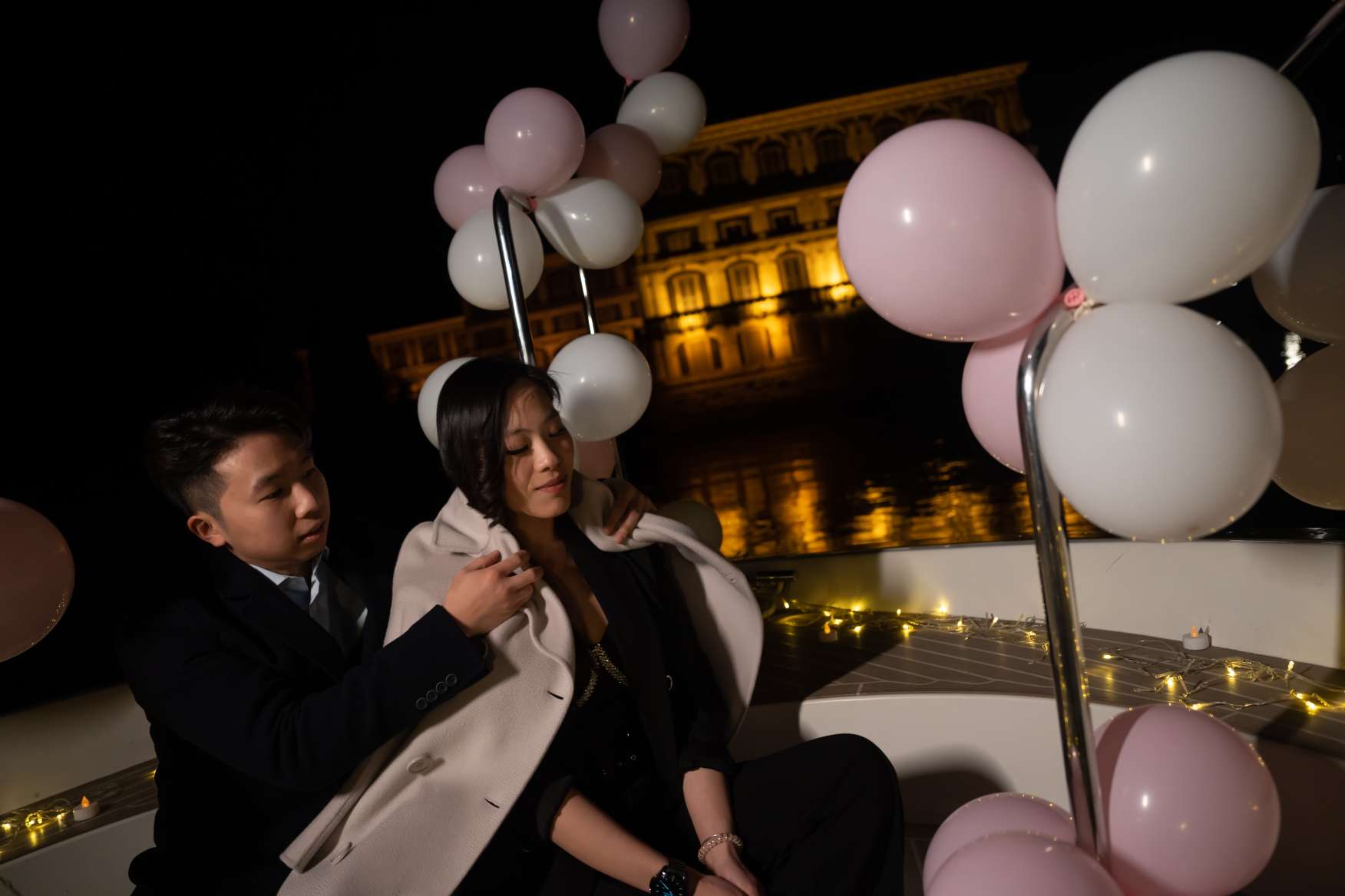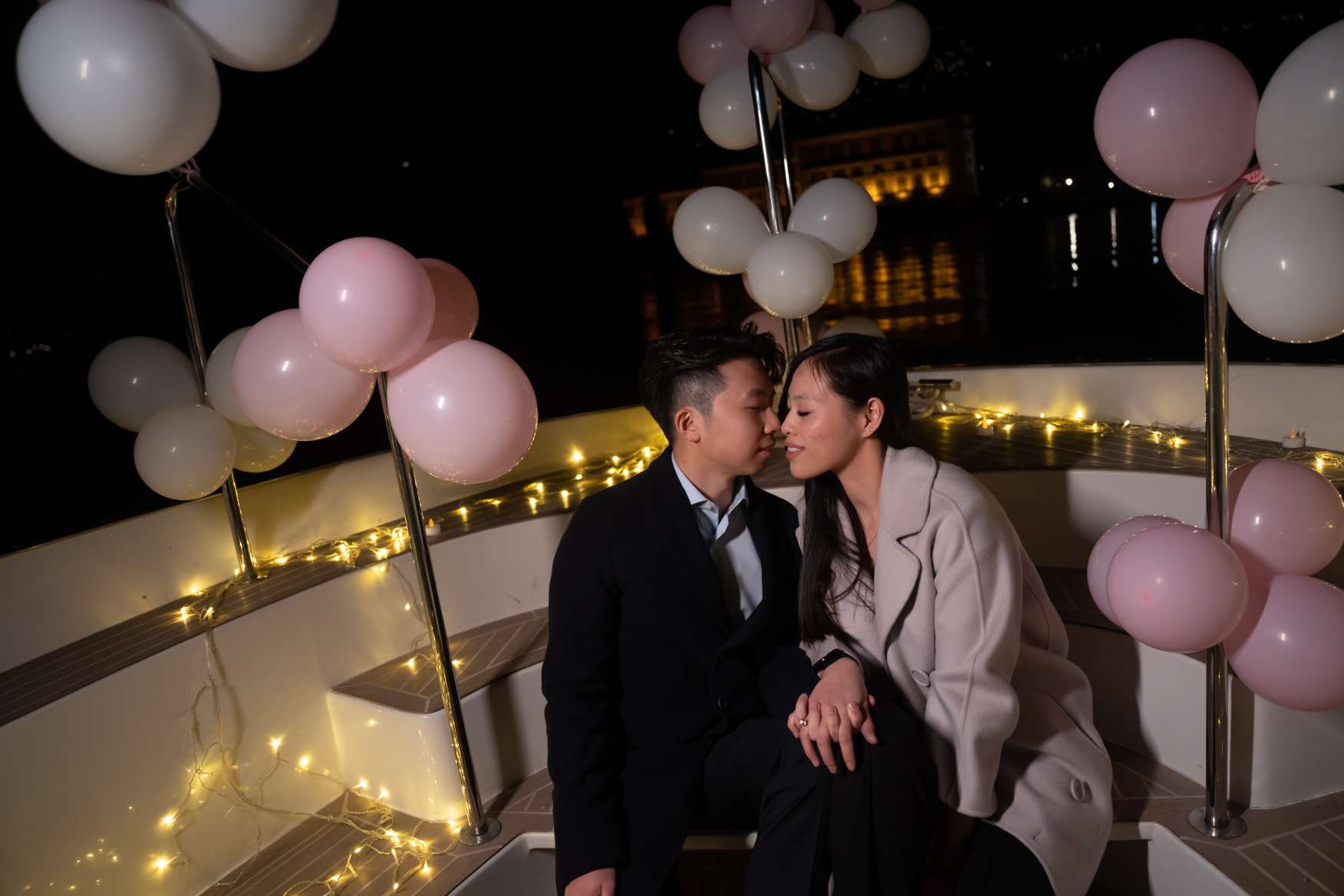 Dopo la cena, con la scusa di una piccola sorpresa di compleanno, Simona è stata accompagnata, con gli occhi bendati, su una barca.