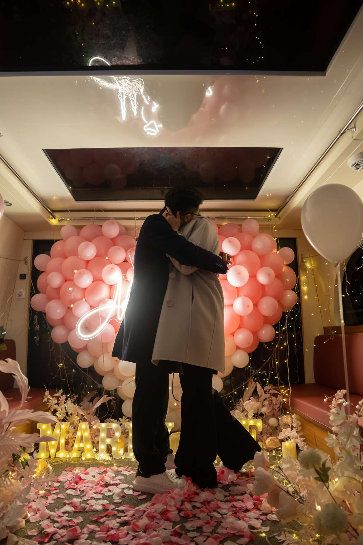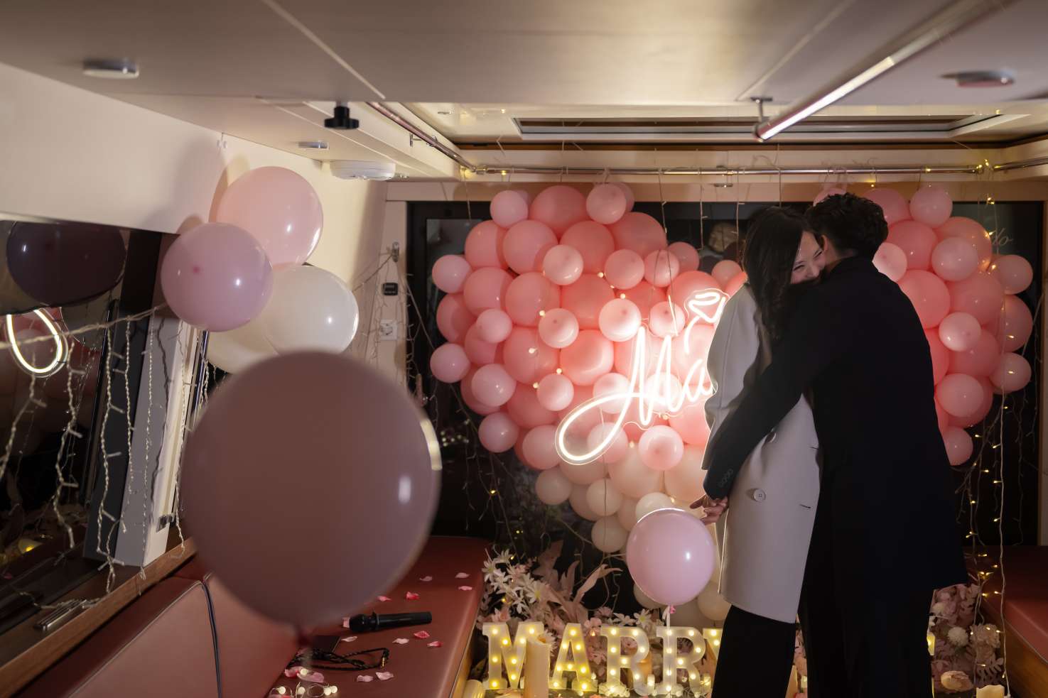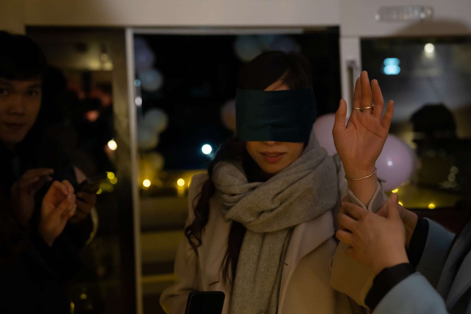 Quando la benda è stata tolta, si è ritrovata circondata dagli amici e dai familiari più cari e con una proposta a sorpresa l’ha lasciata senza fiato.