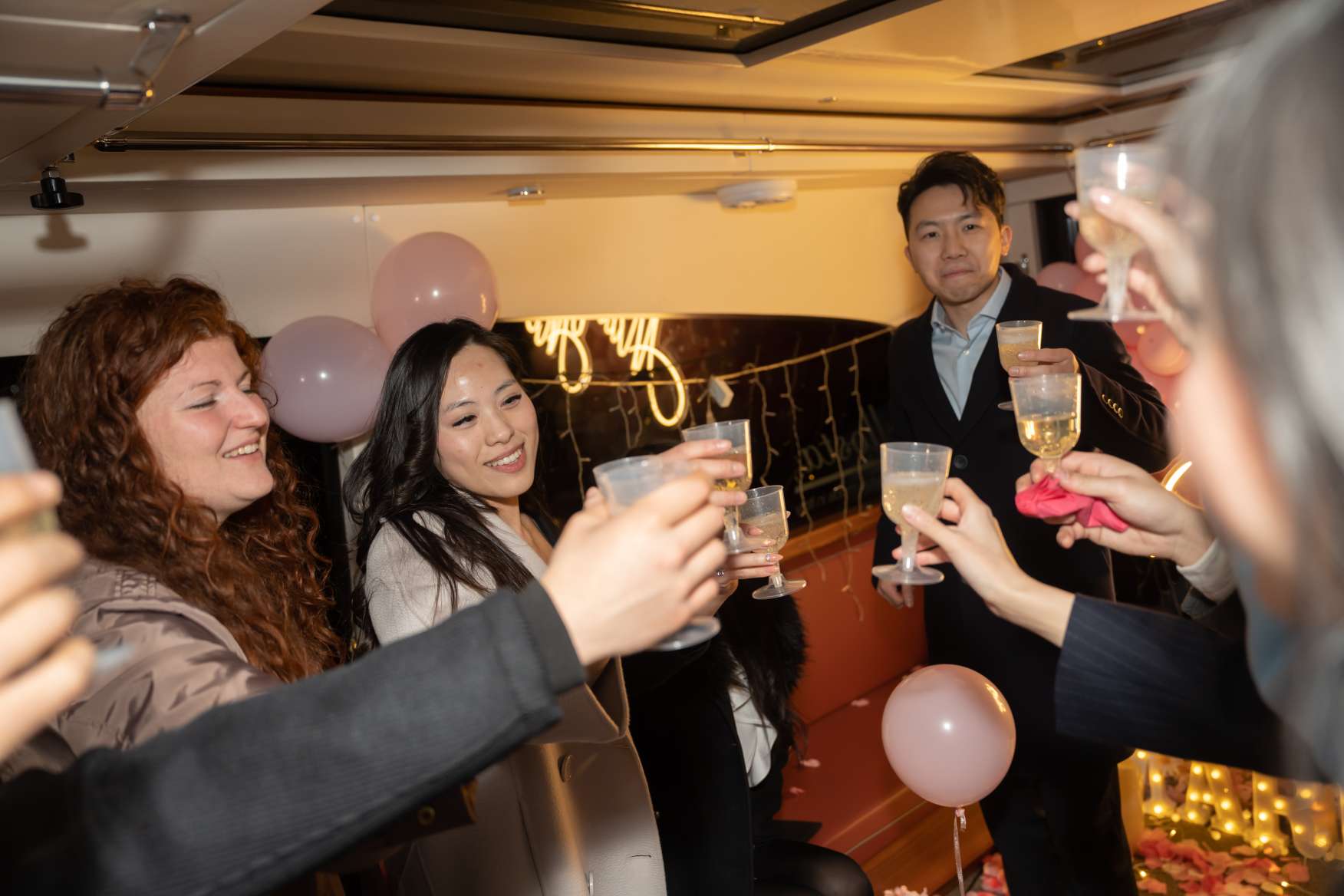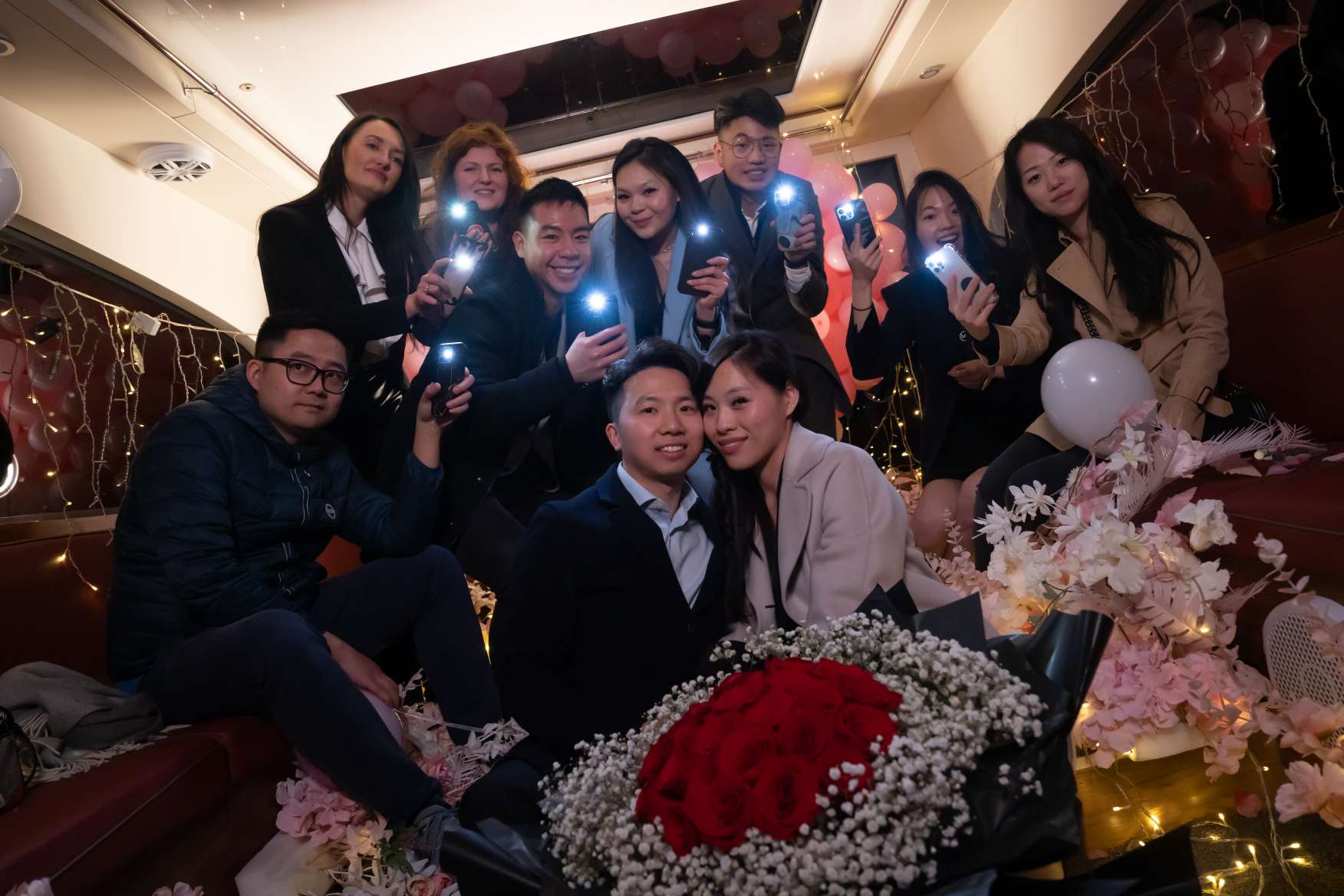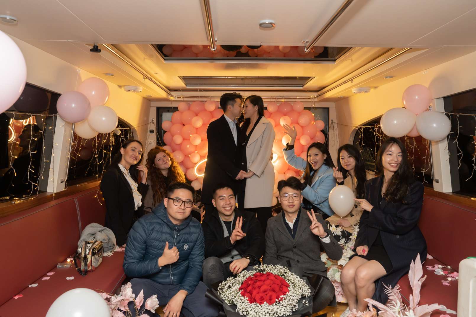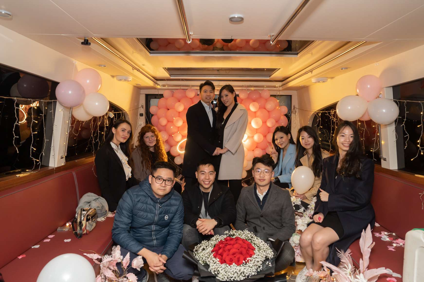 Quando la benda è stata tolta, si è ritrovata circondata dagli amici e dai familiari più cari e con una proposta a sorpresa l’ha lasciata senza fiato.